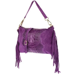 Fioletowa damska włoska skórzana torebka frędzel pozioma Z24