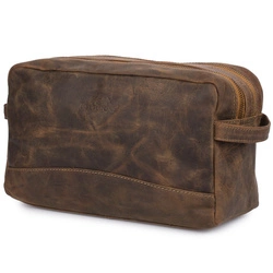 Kosmetyczka skórzana brązowa nubuk saszetka podróżna duża Beltimore J49
