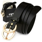 Beltimore skórzany pasek damski złote koła modny D50 : Kolory - czarny, Rozmiar pasków - r.120-135 cm