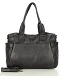 Torebka damska czarna skórzana z kieszeniami na zewnątrz - MARCO MAZZINI
