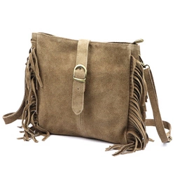 Zgrabna Mała zamszowa damska skórzana listonoszka z frędzlami od Luka