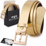 Skórzany pasek damski do spodni sukienki złoty skóra nat 3 cm Beltimore D74 : Kolory - żółty, złoty