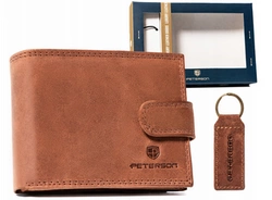 Zestaw prezentowy: portfel męski ze skóry naturalnej i brelok - Peterson