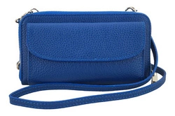 Portfel z etui na telefon ze skóry licowej - Chabrowy