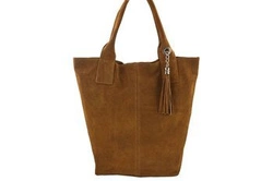 Duży skórzany worek / shopper bag - A4 - Brązowy jasny