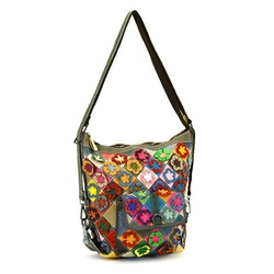 Damska kolorowa listonoszka skórzana wzór mozaika