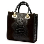 Vera Pelle Damski kuferek wzór skóra krokodyla torebka skórzana do ręki