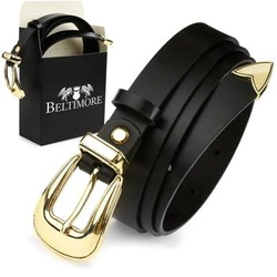 BELTIMORE damski pasek skórzany czarny pudełko A92 : Kolory - czarny, Rozmiar pasków - r.80-95 cm