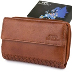 Brązowy Portfel Damski Skórzany Poziomy Vintage Plecionka Beltimore Q62