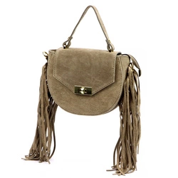 Zamszowa pojemna Damska skórzana torebka do ręki z frędzlami i dżetami Luka