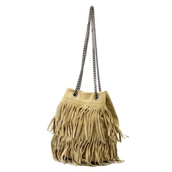Zamszowa skórzana listonoszka worek z frędzlami