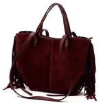 Vera Pelle damska shopperbag zamszowa torebka na ramię z frędzlami