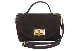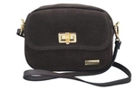 Mała zamszowa listonoszka ze złotym zapięciem - Brązowa ciemna