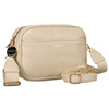 - Beżowa mała listonoszka na ramię lub przez ramię crossbody. Torebka odszyta z wysokiej jakości skóry ekologicznej. Wyposażona w jedną komorę zamykaną suwakiem i cztery kieszonki na drobiazgi. W komplecie dwa paski - szeroki z materiału, wąski z eko skóry