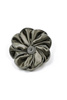 Satynowy kwiatuszek, w odcieniu zieleni, wykończony zamkami błyskawicznymi.