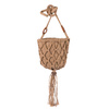 Wykończony makramowym splotem, dużym frędzlem i drewnianymi elementami.