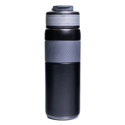 Czarny kubek termiczny ze stali nierdzewnej z silikonowym ustnikiem - Peterson