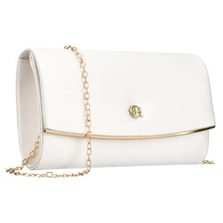 Beżowa kopertówka damska ze skóry ekologicznej zawieszona na łańcuszku - Rovicky
